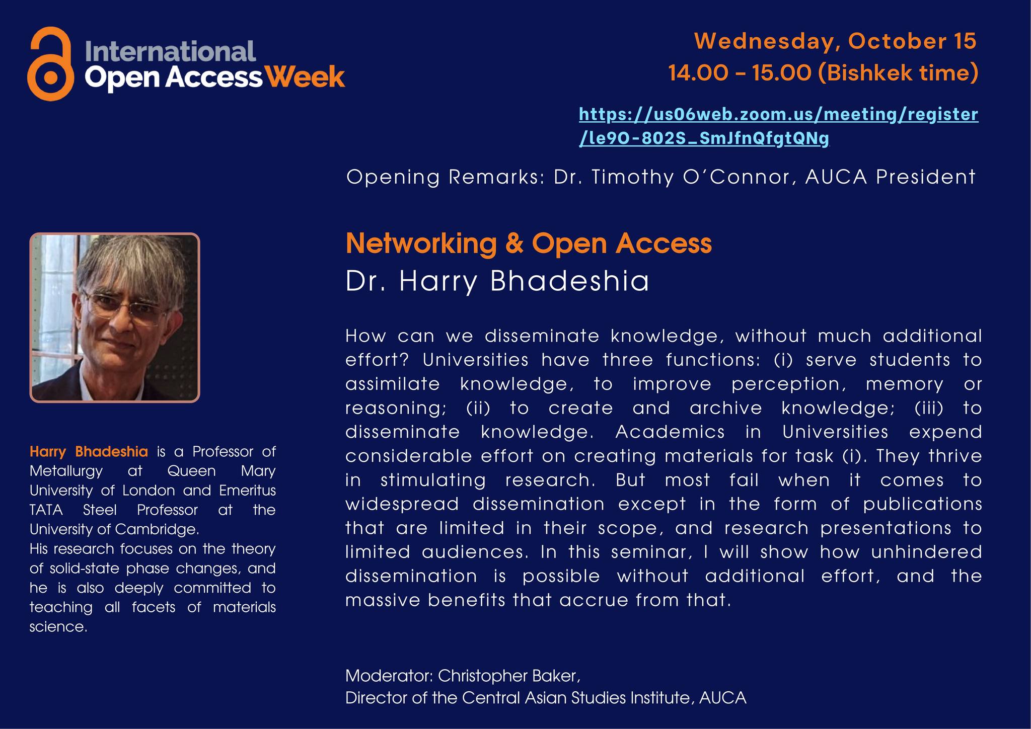 Join Dr. Harry Bhadeshia for a seminar on 鈥淣etworking & Open Access,鈥 where he will explore how academics can disseminate their research widely with minimal effort. Learn practical strategies to increase the reach and impact of your work beyond traditional publications and presentations.