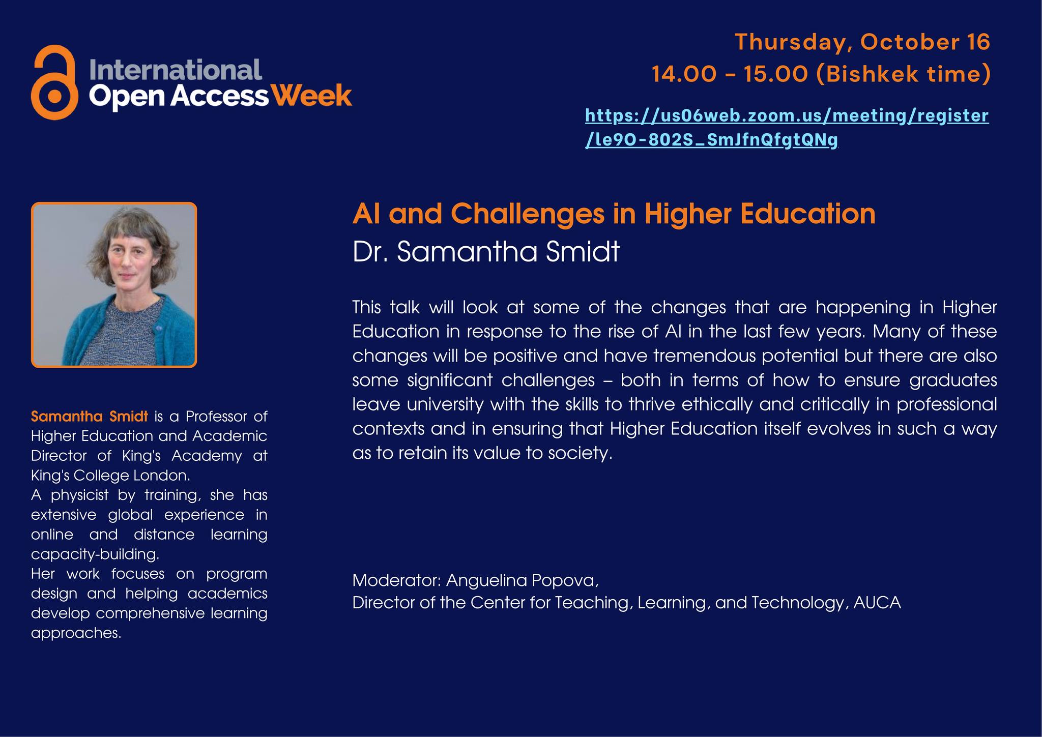 Join Dr. Samantha Smidt for a talk on 鈥淎I and Challenges in Higher Education鈥