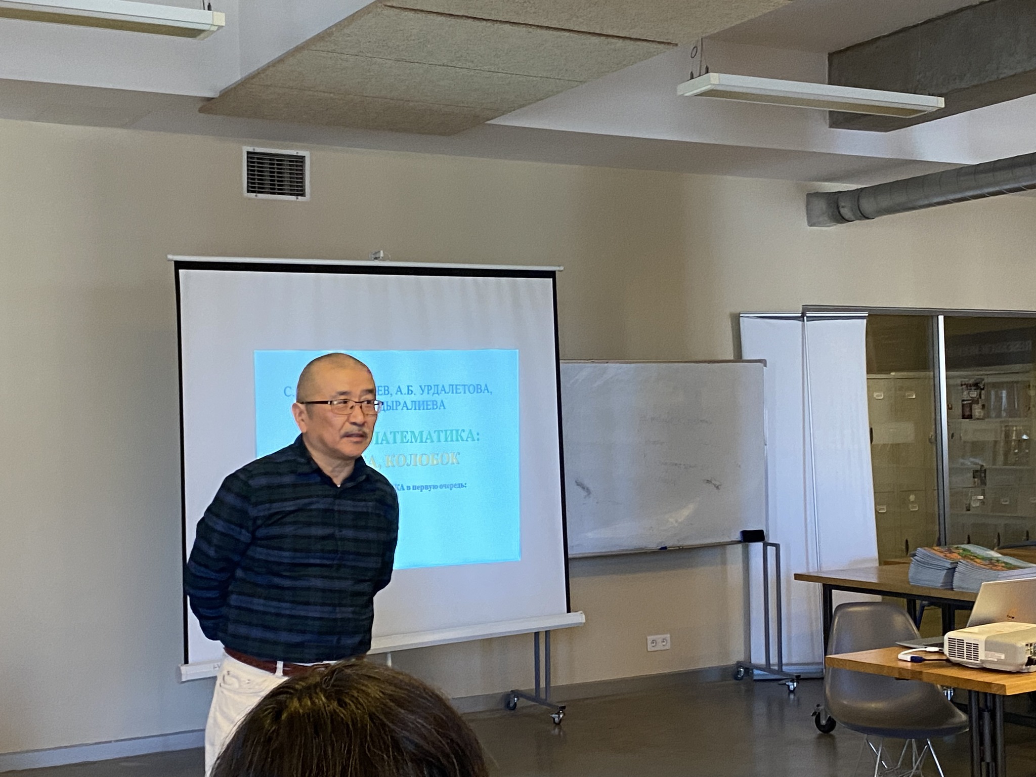 7 октября 2025 г. в библиотеке АУЦА прошла презентация учебного пособия «Живая математика: Репка, Колобок», представленная одним из авторов – профессором департамента Прикладной математики АУЦА Сыргаком Капаровичем Кыдыралиевым. Это пособие является продолжением серии публикации «Живая математика».